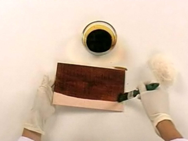 Нам потребуется:анилиновый пигмент цвета Бисмарк, спирт, кисти, доска, ветошь, перчатки.